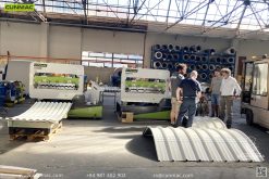 Crimp curving machine is used to press trimdek/spandek/4 angles/waves/ribs type/trapezoidal curved into an arch, for roofing in the eaves to make crimp curved roofing sheets